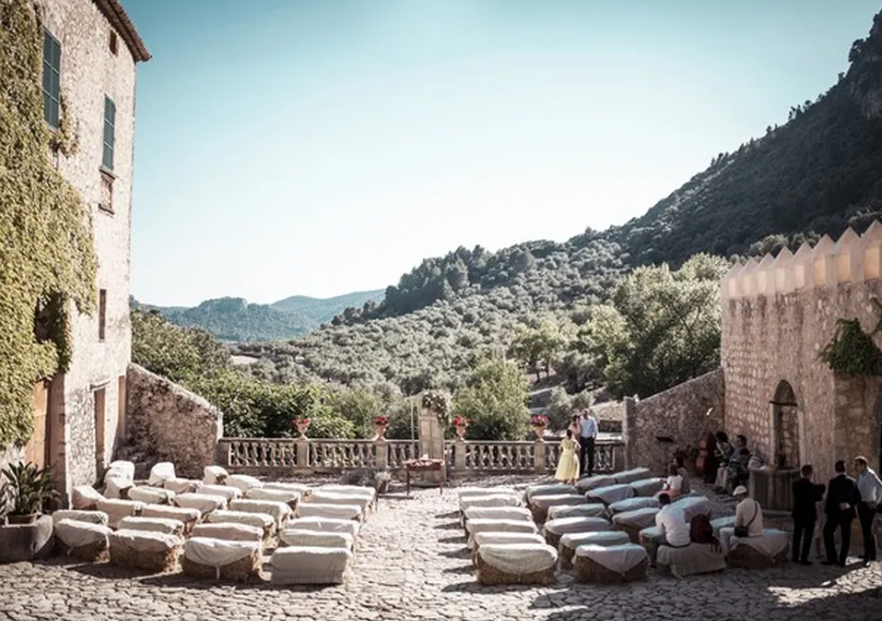 Uma charmosa vinícola, a meia hora de Palma, integra a região mais tradicional de produção de vinhos da ilha, Binissalem. O plantio foi muito próspero até o início do século 20, quando uma praga destruiu grande parte dos vinhedos. Hoje, a vinícola segue sua produção em menor escala e, de olho na tendência dos destination weddings, abre suas portas para receber casamentos e eventos sociais. Um diferencial interessante é que o coquetel de recepção pode ser oferecido aos convidados na rua, apresentado como uma feira, reproduzindo o tradicional mercado da ilha. Para o jantar, as mesas para 30 convidados cada são montadas em um belo jardim. A propriedade é composta por 14 casas e uma capela, bem como extensas terras agrícolas.
