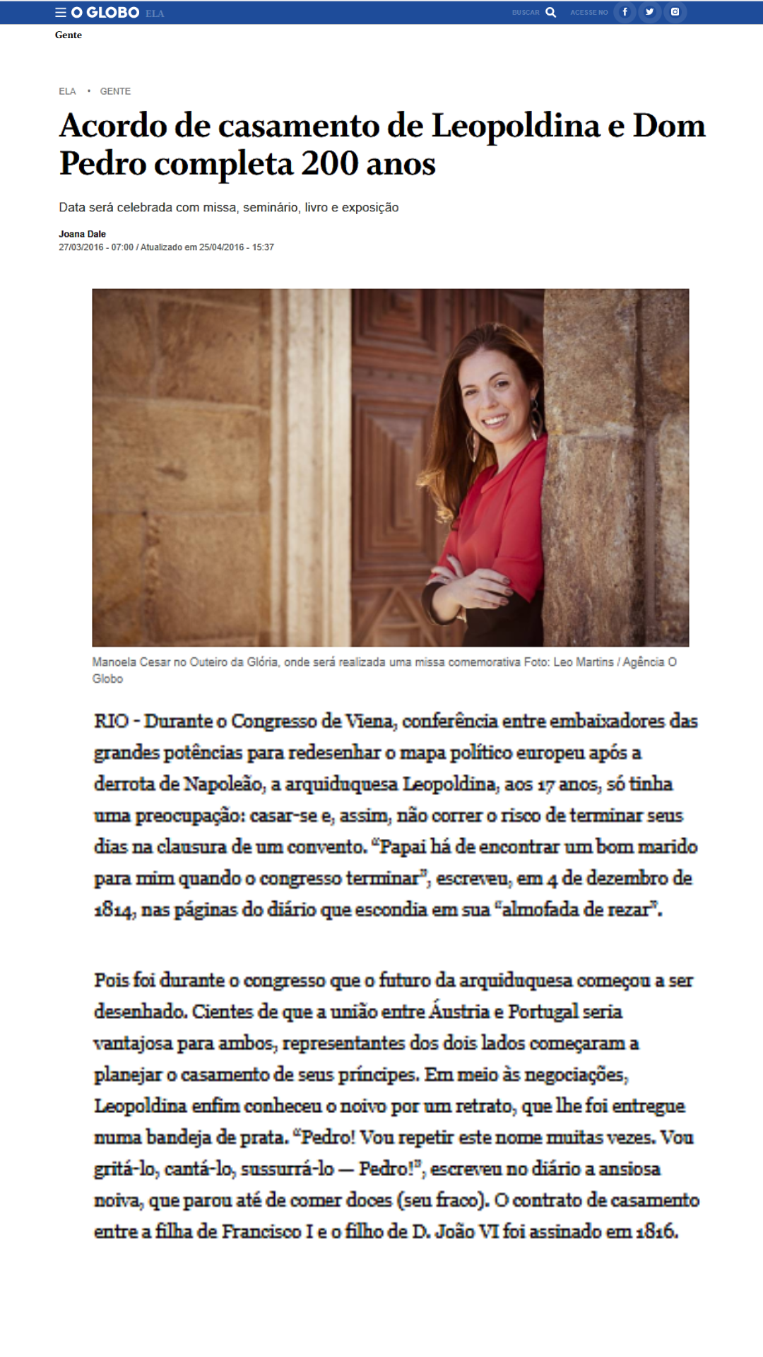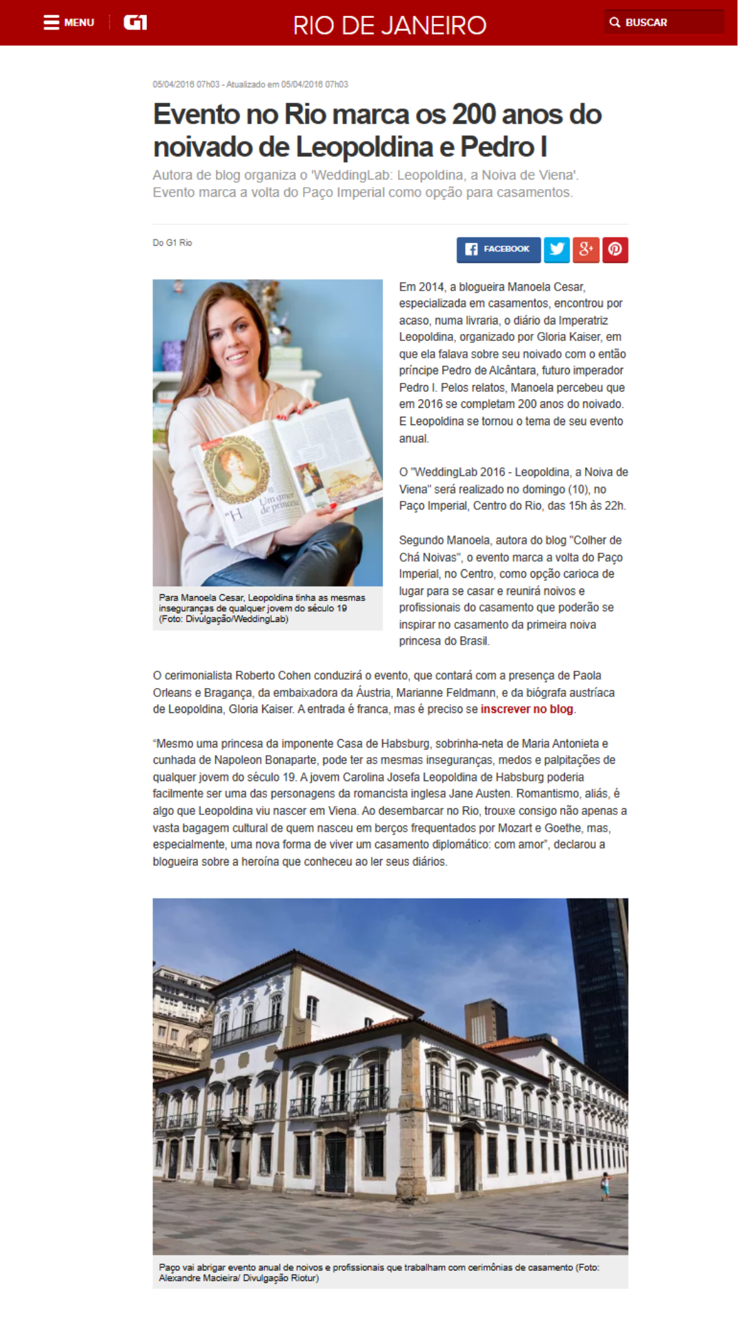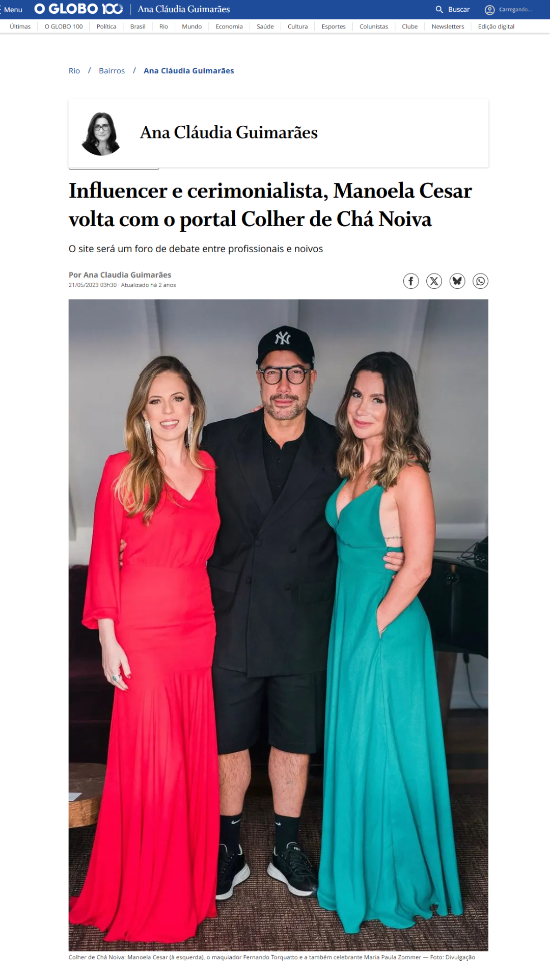 Formada em Comunicação pela UFF, com especializações em História da Literatura Vitoriana (UERJ), Psicoterapia Corporal Reichiana (AMV), e certificada professora em Etiqueta e Protocolo pela British School of Etiquette, a consultora de casamento Manoela Cesar trabalhou durante 10 anos como repórter de comportamento. Em 2010, empreendeu no portal Colher de Chá Noivas, se tornando a primeira blogueira de casamento do Rio de Janeiro.